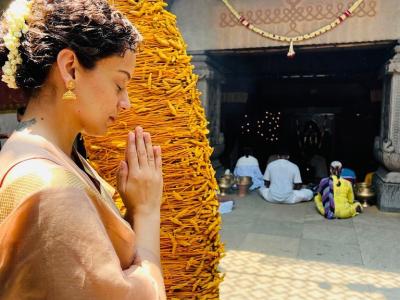 कंगना रनौत ने अपने ऑफिशियल इंस्टाग्राम हैंडल पर कुछ तस्वीरें शेयर की है, जिसमे वह मंदिर में देवी की पूजा करते हुए नजर आ रही हैं। (फोटो: इंस्टाग्राम)
