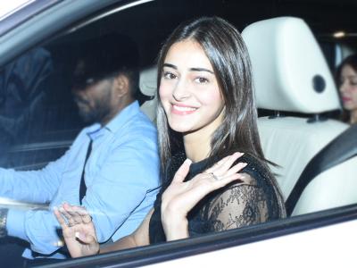 अनन्या पांडे ने पार्टी में स्टाइलिश अंदाज में एंट्री मारी उन्होंने फैंस को हाथ हिलाते हुए पार्टी में एंट्री की।