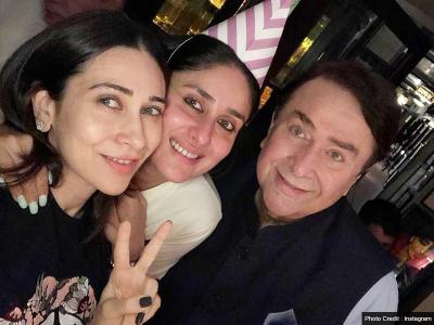 इस तस्वीर में करीना कपूर अपनी बहन करिश्मा कपूर और पापा रणधीर कपूर के साथ दिख रही हैं।