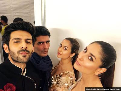 करीना के साथ कार्तिक आर्यन और फैशन डिज़ाइनर मनीष मल्होत्रा भी नजर आए।