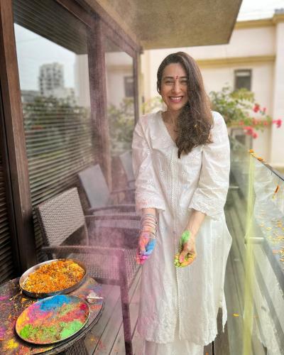 करिश्मा कपूर ने भी अपने घर पर जमकर होली खेली, जिसकी तस्वीरें उन्होंने अपने इंस्टाग्राम पर शेयर की हैं। (फोटो: इंस्टाग्राम)