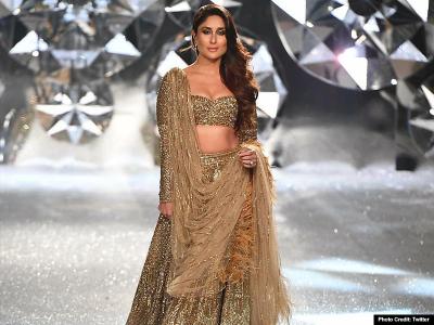 अभिनेत्री करीना कपूर ने 30 किलो का गोल्ड लहंगा पहन रैंप वॉक कर लोगों को चौंका दिया।
