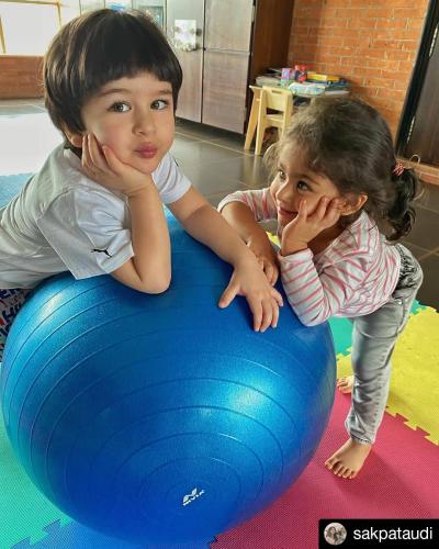 इस फोटो में इनाया और तैमुर साथ में नजर आ रहे हैं। (फोटो: इंस्टाग्राम)