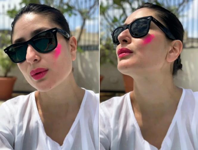 करीना कपूर ने होली की इंस्टाग्राम पर फोटो शेयर की जिसमें वह गुलाबी रंग लगाए नजर आ रही है