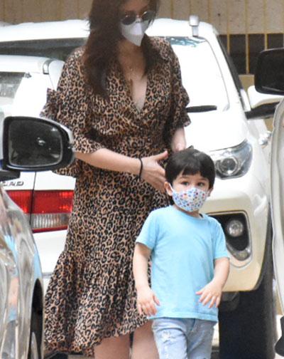 इस दौरान तैमूर अली खान चेहरे पर मास्क लगाए हुए नजर आए।