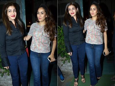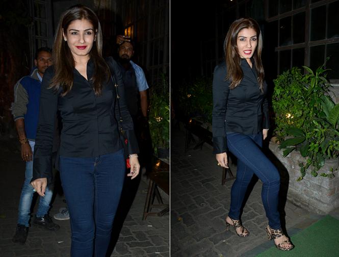 रवीना टंडन शुक्रवार देर रात एक कैफे के बाहर नजर आई हैं