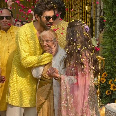 बहन कृतिका की हल्दी सेरेमनी में कार्तिक आर्यन का डांस, देखें तस्वीरें