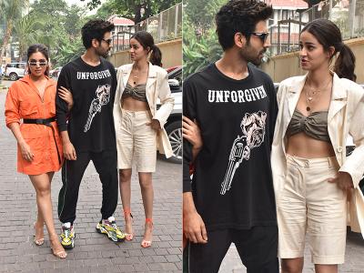 इन दिनों कार्तिक आर्यन, भूमि पेड़नेकर और अनन्या पांडे अपनी आने वाली फिल्म 'पति, पत्नी और वो' के प्रमोशन में बिजी हैं।