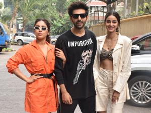 1 / 8इन दिनों कार्तिक आर्यन, भूमि पेड़नेकर और अनन्या पांडे अपनी आने वाली फिल्म 'पति, पत्नी और वो' के प्रमोशन में बिजी हैं।2 / 8प्रमोशन के दौरान कार्तिक आर्यन, भूमि पेड़नेकर और अनन्या पांडे ग्लैमरस लुक में नजर आए।3 / 8इस दौरान कार्तिक और अनन्या की जोड़ी काफी शानदार लग रही थी।4 / 8कार्तिन आर्यन और अनन्या इस दौरान मस्ती के मूड में नजर आए।5 / 8भूमि पेडनेकर ऑरेंज ड्रेस और ब्लैक एंड वाइट गॉगल में काफी ग्लैमरस लग रही थीं।6 / 8प्रमोशन के दौरान अनन्या पांडे काफी क्यूट लग रही थीं।7 / 8कार्तिक आर्यन भी ब्लैक ड्रेस में काफी हैंडसम लग रहे थे।8 / 8'पति पत्नी और वो' के प्रमोशन के दौरान कार्तिक आर्यन भूमि और अनन्या से घिरे नजर आए।