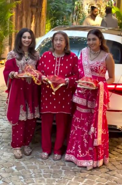 कपूर परिवार भी करवा चौथ सेलिब्रेशन में पहुंचा जिसमें रीमा जैन, अलेखा अदवाणी और कपूर परिवार के कई लोग सुनीता कपूर के घर पहुंचे। (Photo Credit: Twitter)
