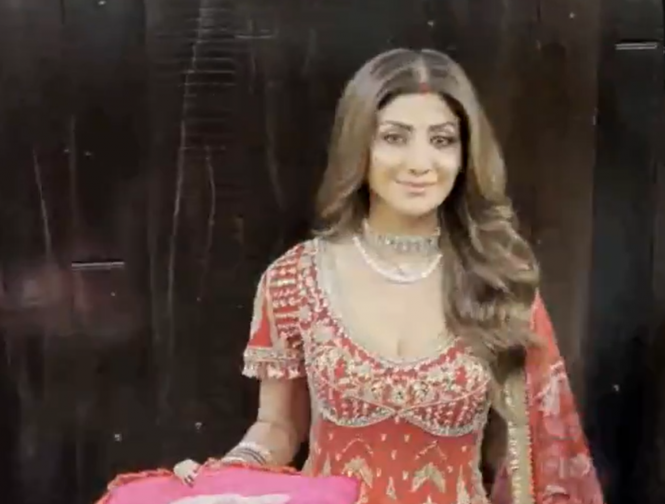 बॉलीवुड एक्टर अनिल कपूर की पत्नी सुनीता कपूर हर साल की तरफ अपने घर करवा चौथ सेलिब्रेट करती हैं, जिसमें बॉलीवुड की कई एक्ट्रेस पहुंचती हैं, ऐसे में शिल्पा शेट्टी ट्रेडिशनल लुक में सुनीता कपूर के घर पहुंची। (Photo Credit: ANI)