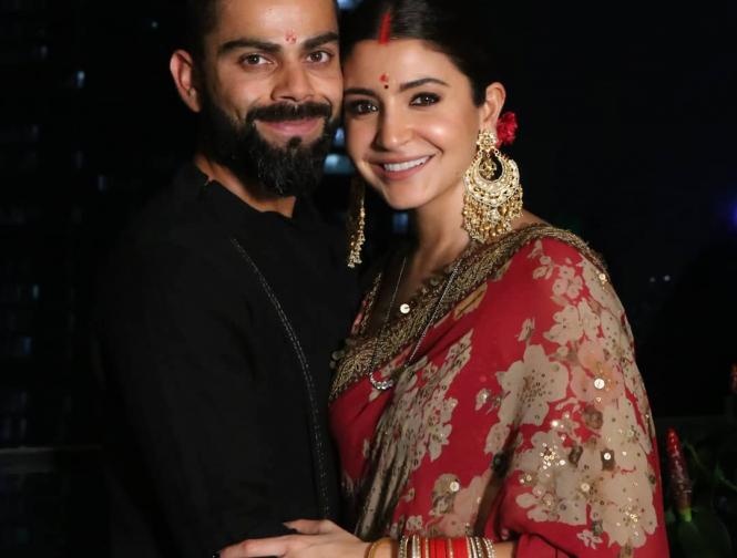करवाचौथ के मौके पर बॉलीवुड एक्ट्रेस अनुष्का शर्मा लाल रंग की साड़ी में बेहद खूबसूरत नजर आ रही हैं। (फोटो: इंस्टाग्राम)