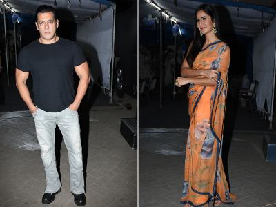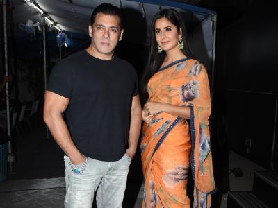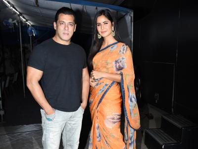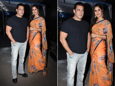 इस दौरान सलमान खान ब्लैक टी शर्ट और ग्रे पेंट में नजर आए, वहीं कैटरीना कैफ ऑरेंज कलर की प्रिंटेड साड़ी में दिखीं।