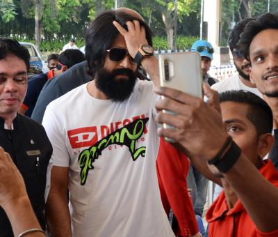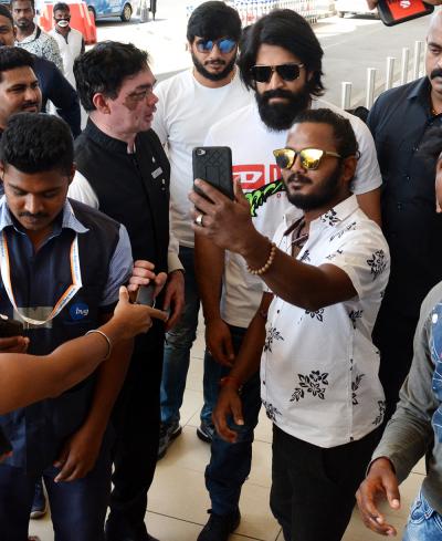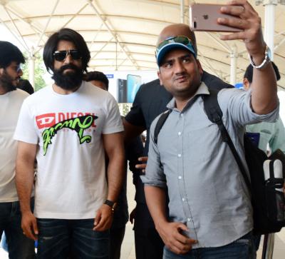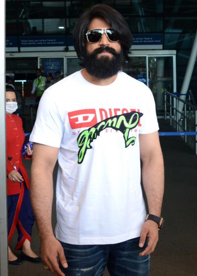 यश के साथ मुंबई एयरपोर्ट पर फैंस सेल्फी लेने के लिए बेताब नजर आए। 'केजीएफ : चैप्टर 1' की सफलता के बाद फैंस इसके दूसरे भाग का बेसब्री से इंतजार कर रहे हैं।