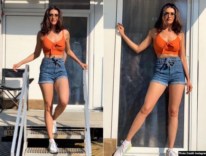 करिश्मा इस दौरान ऑरेंज कलर के क्रॉप टॉप के साथ ब्लू डेनिम जीन्स में गजब ढा रही हैं।