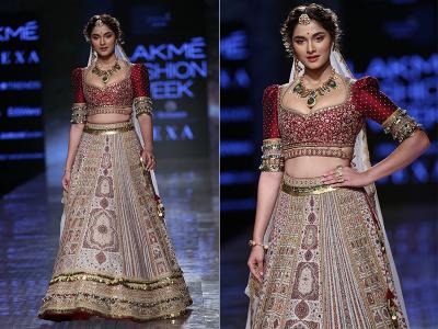 'दबंग 3' एक्ट्रेस सई मांजरेकर भी दुल्हन की तरह स्टाइलिश लहंगे में रैंप पर उतरीं।