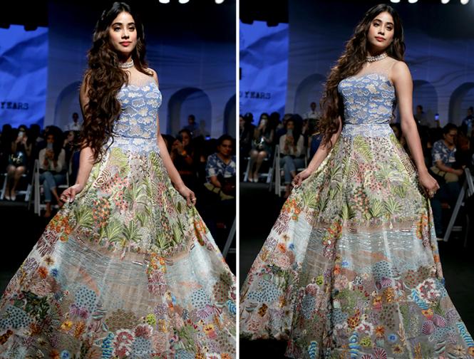 वहीं जाह्नवी डिजाइनर राहुल मिश्रा द्वारा डिजाइन की गई ड्रेस पहनकर रैम्प पर चलीं