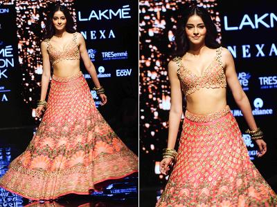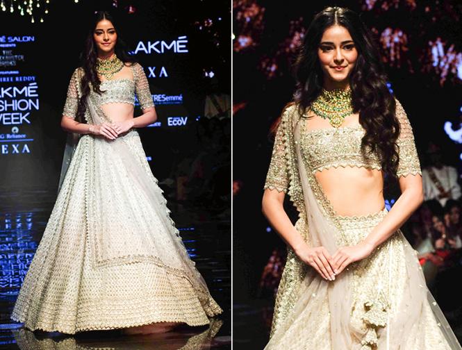 अनन्या ने रैंप पर 2 डिज़ाइनर अनुश्री रेड्डी और अर्पिता मेहता के लिए दो अलग अलग लहंगों में वॉक की, इस दौरान अनन्या बेहद खूबसूरत लग रही थीं।