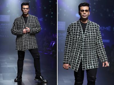 करण ब्लैक कलर की जैकेट और ट्राउजर में रैप में दिखे