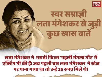 लता मंगेशकर ने मराठी फिल्म 'पहली मंगला गौर' में एक्टिंग भी की है। जब पहली बार लता मंगेशकर ने स्टेज पर गाना गाया था तो उन्हें 25 रुपए मिले थे।