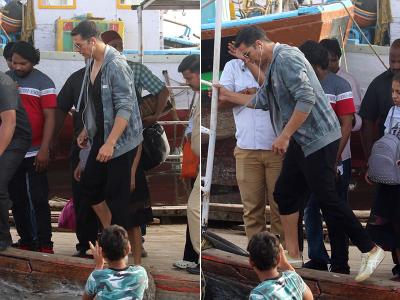 अक्षय इस दौरान बोट के किनारे बैठे कानों में ईयरफोन लगाए हुए चिल मूड में दिखाई दिए।