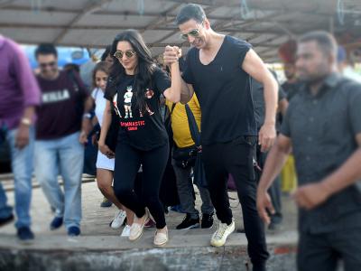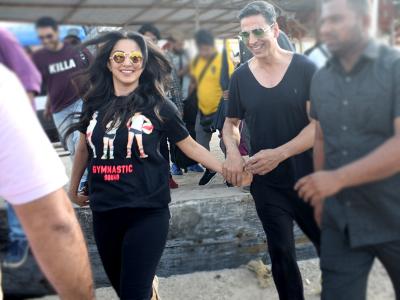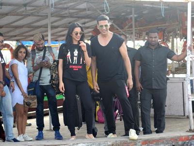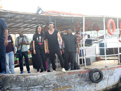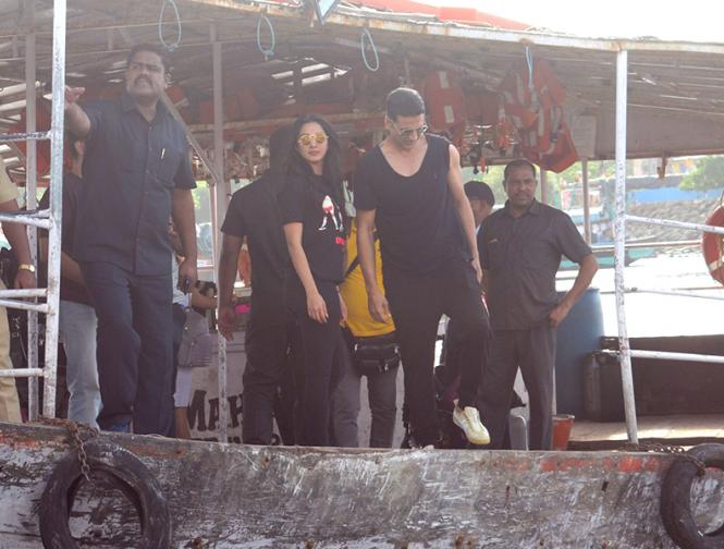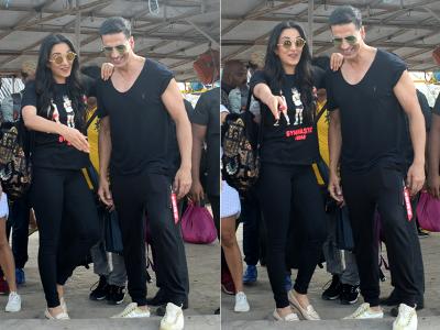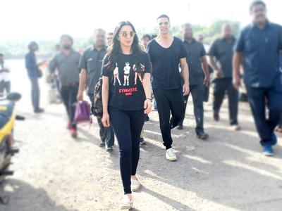 अक्षय और किआरा दोनों ही शूटिंग के दौरान ब्लैक आउटफिट में दिखाई दिए।