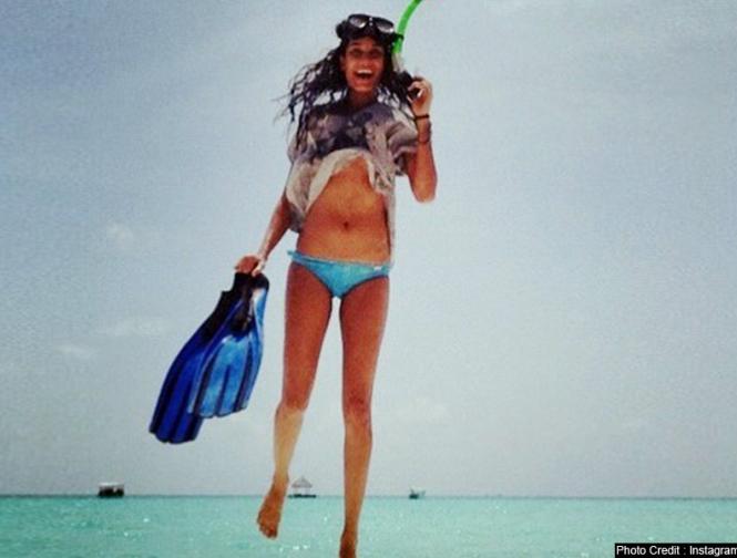 रेड कलर की इस बिकीनी में लीजा बेहद हॉट और सेक्सी लग रही हैं।
