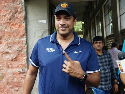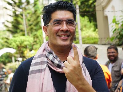 संजय दत्त अपनी पत्नी मान्यता के साथ वोट डालने पहुंचे
