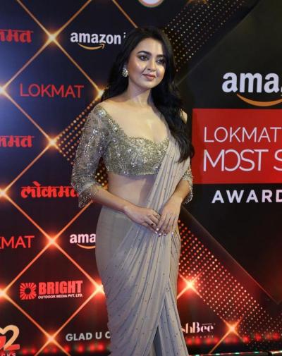 बॉस 15 के विजेता तेजस्वी प्रकाश ने रेड कार्पेट पर पोज देते हुए।