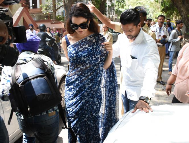 लोकसभा इलेक्शन 2019: नीली साड़ी पहनकर कंगना रनौत डालने पहुंची वोट, नहीं हटीं फैंस की नजरें