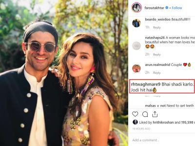 फरहान अख्तर और शिबानी दांडेकर की इस तस्वीर को देखने के बाद फैंस ने उनकी जमकर तारीफ की है एक यूजर ने तो कमेंट में कहा है 'शादी कर लो, जोड़ी हिट है।'