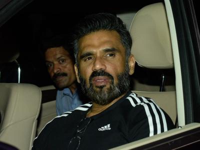 सुनील शेट्टी बी फिल्म की स्क्रीनिंग के दौरान आए नजर
