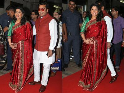 फिल्म 'हम आपके हैं कौन' में सलमान खान की भाभी का किरदार निभा चुकी रेणुका शाहणे अपने पति आशुतोष राणा के साथ पहुंची।
