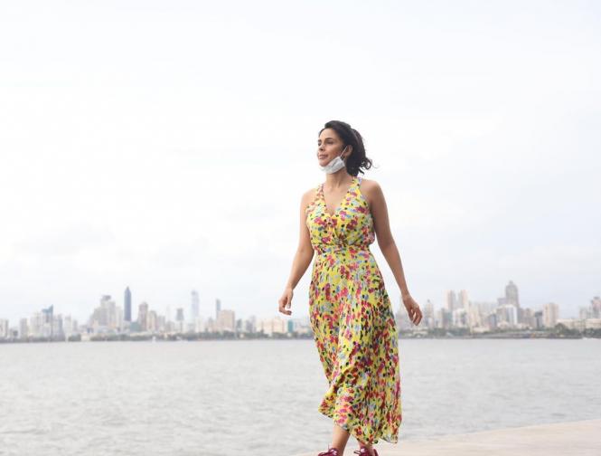 मल्लिका शेरावत ने वॉक के दौरान मास्क भी पहना हुआ था। (फोटो: इंस्टाग्राम)