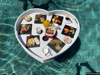 तस्वीरों में मंदिरा पूल में ग्लैमरस अंदाज में एन्जॉय करती दिख रही हैं।