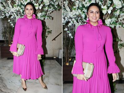 हुमा कुरेशी भी पर्पल ड्रेस में खूबसूरत लगती हैं।