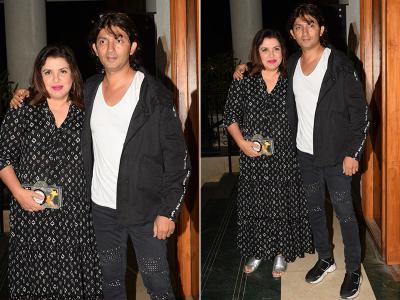 फराह खान अपने पति शिरीष कुंदर के साथ दिखीं।