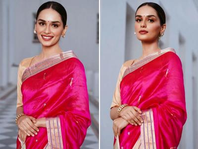 मानुषी छिल्लर ने पिंक साड़ी में ढाया कहर, सिंपल लुक से लूटी महफिल