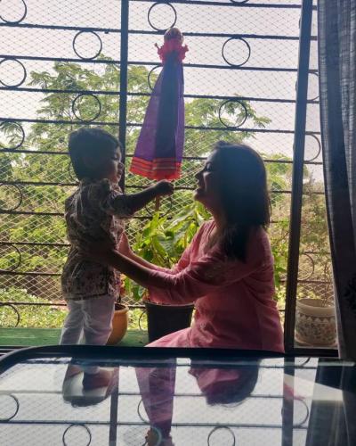 मराठी अभिनेत्री कदम उपन्यास अपने बेटे के साथ