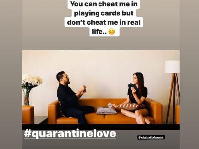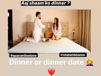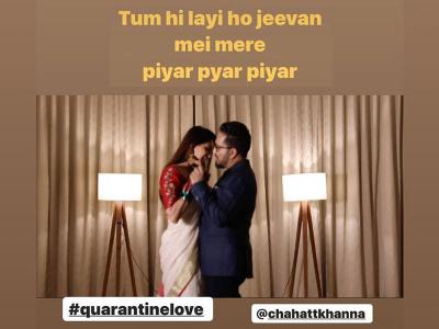 चाहत खन्ना ने अपने इंस्टाग्राम पर तस्वीरें शेयर करते हुए लिखा है, Lets be someone’s quarantine, Glad we found each other in this lockdown #quarantinelove ❤️🌈 @mikasingh #learningmusic