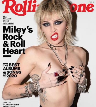 इस तस्वीर में माइली साइरस टॉपलैस होकर पोज दे रही हैं।