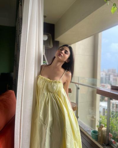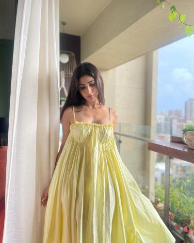 इन तस्वीरों में मौनी रॉय ने येलो कलर के ढीले ढाले फ्रॉक पहने देखा जा रहा हैं। (फोटो: इंस्टाग्राम)