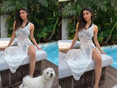 ब्लैक बिकिनी के साथ व्हाइट शीयर स्लिट ड्रेस में मौनी रॉय का पूलसाइड अंदाज़ बेहद क्लासी और स्टाइलिश नजर आ रहा है। (फोटो क्रेडिट: इंस्टाग्राम)