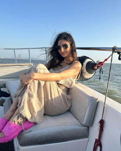 इन तस्वीरों में मौनी रॉय समंदर के बीच यॉट में बैठकर मौसम का लुत्फ उठाती नजर आ रही हैं। (फोटो: इंस्टाग्राम)