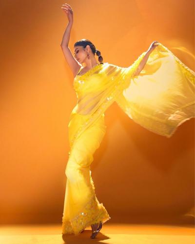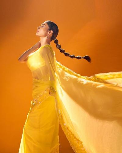 येलो साड़ी में मौनी रॉय ने दिए सिज़लिंग पोज़, फ्लॉन्ट किया कर्वी फिगर
