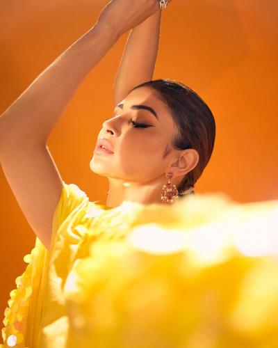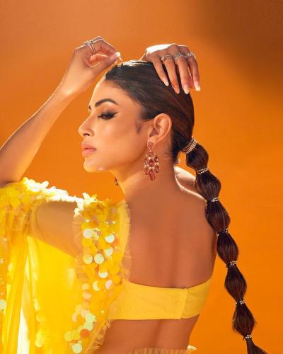 तस्वीरों में मौनी येलों कलर की साड़ी में कहर ढा रही हैं। साड़ी के साथ एक्ट्रेस ने अपने बालों की चोटी बनाई है, जो उन पर काफी जच रही है। (फोटो: इंस्टाग्राम)