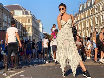 मौनी बीच सड़क पर आइसक्रीम खाते हुए बोल्ड अंदाज में दिखीं।