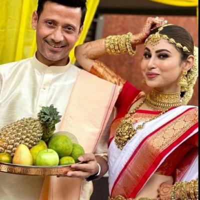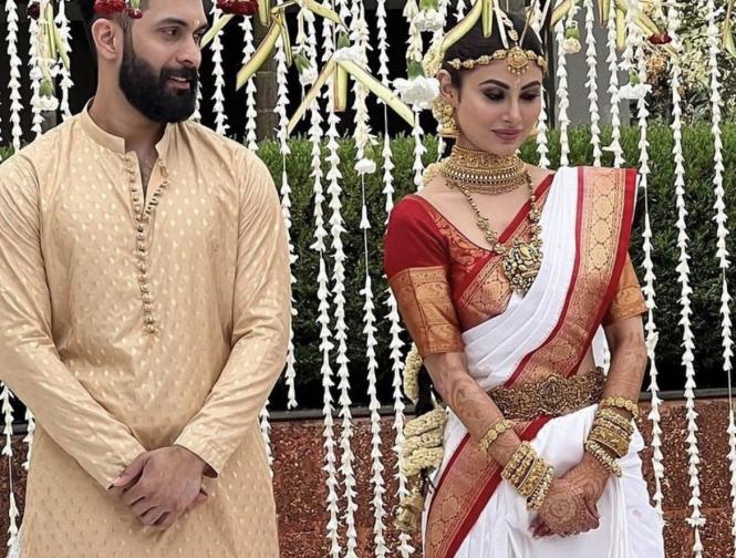 मौनी रॉय बनीं दुल्हन, साउथ इंडियन रीति रिवाज से की शादी, देखें शादी की फोटोज