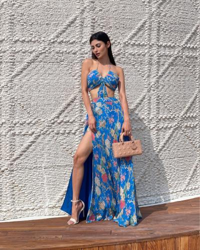 इन तस्वीरों में मौनी रॉय ने ब्लू कलर की थाई हाई ड्रेस में बेहद हॉट और खूबसूरत दिख रही हैं। (फोटो: इंस्टाग्राम)