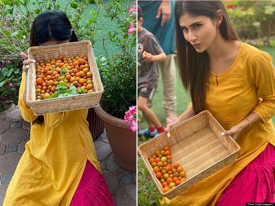 मौनी रॉय ने इंस्टाग्राम पर अपना कुछ फोटोज शेयर की है जिसमें वह अपने गार्डन से टमाटर तोड़ती नजर आ रही हैं।